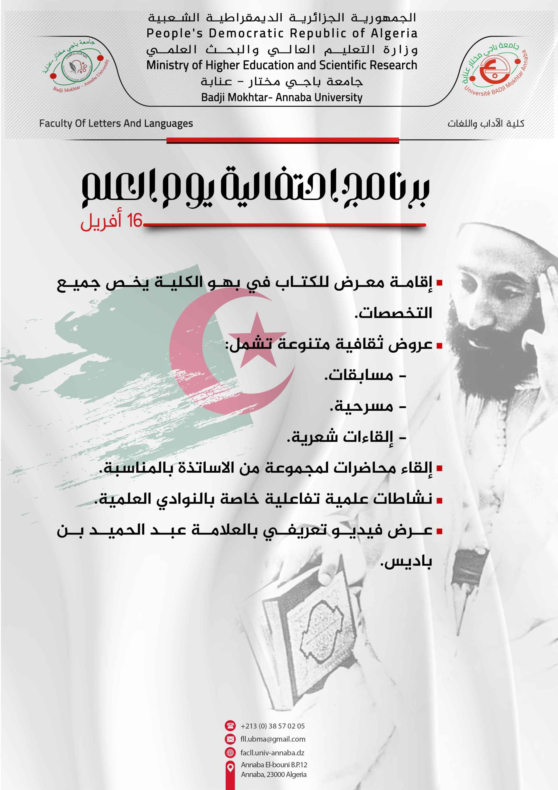 احتفالية يوم العلم Vous devriez également aimer مسابقة الأستاذ المتميّز 26 mai 2024 إعلان خاص بمصلحة المالية 4 mars 2024 نتائج الماستر %80 15 septembre 2024