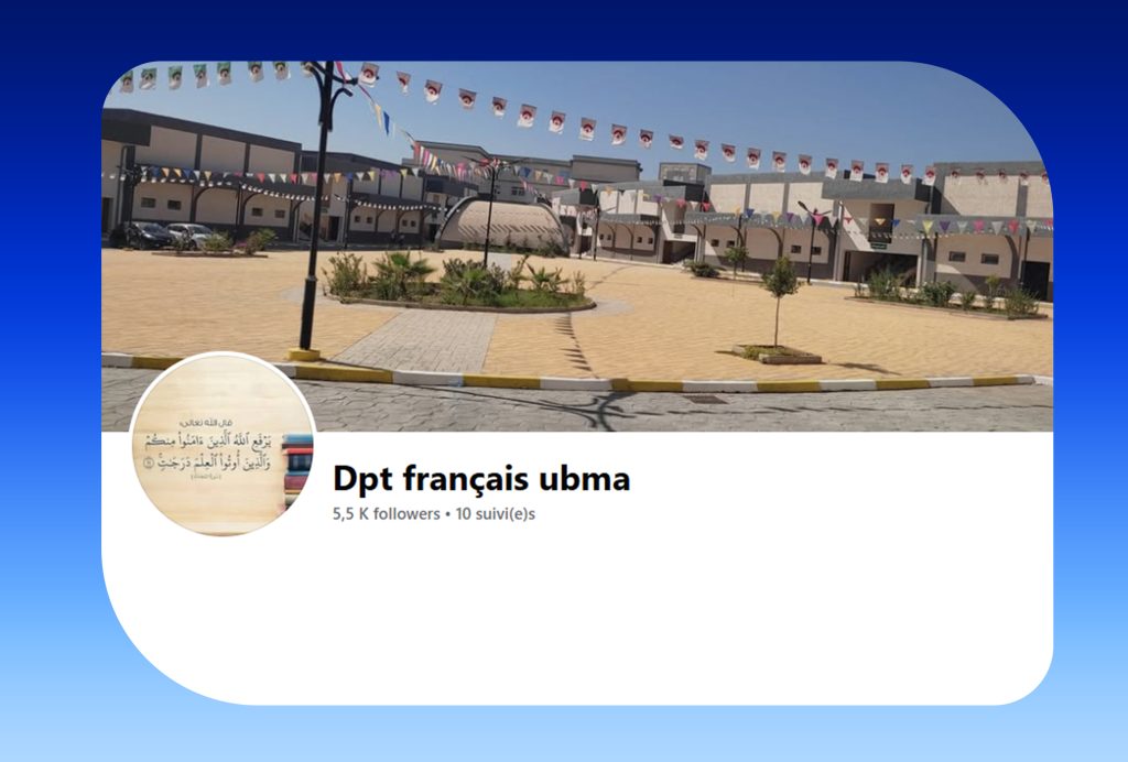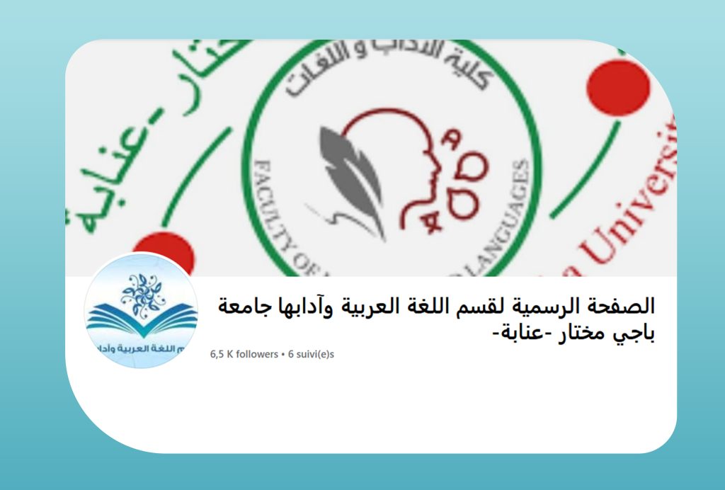 روابط صفحات الأقسام على الفايسبوك رابط صفحة الفايسبوك لكلية الآداب واللغات https://www.facebook.com/letters.UbmaOfficial?mibextid=ZbWKwL رابط صفحة الفايسبوك لقسم اللغة العربية وآدابها https://www.facebook.com/profile.php?id=100079439175522&mibextid=ZbWKwL رابط صفحة الفايسبوك لقسم الآداب واللغة الفرنسية https://www.facebook.com/profile.php?id=100057488146325&mibextid=ZbWKwL رابط صفحة الفايسبوك لقسم الآداب واللغة الإنجليزية https://www.facebook.com/profile.php?id=61566591980436&mibextid=ZbWKwL رابط صفحة الفايسبوك لقسم الآداب واللغة الإيطالية https://www.facebook.com/DipartimentodiitalianisticaUBMA?mibextid=ZbWKwL رابط صفحة الفايسبوك لقسم الترجمة https://facebook.com/groups/2312350275701223/ Vous devriez également aimer Portes Ouvertes sur la Faculté 2024-2025 29 avril 2025 Listes des etudiants exclus 6 janvier 2026 Soutenances en Doctorat 26 janvier 2025