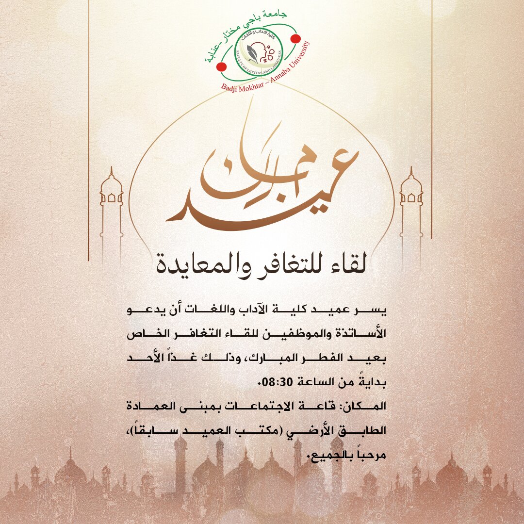 لقاء للتغافر والمعايدة Vous devriez également aimer Emplois du temps du 2ème semestre 2023-2024 24 janvier 2024 تعزية 26 mars 2024 أيام تحسيسية لطلبة السنة الثالثة ليسانس والثانية ماستر حول القرار 1275 31 octobre 2024
